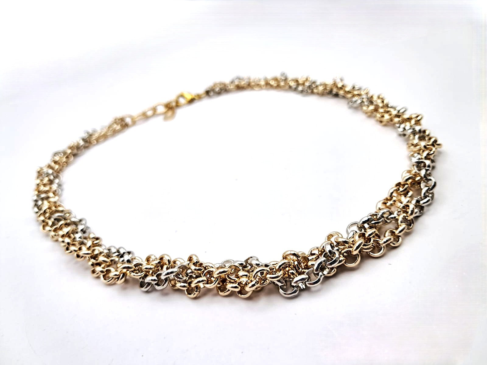 Collana corta artigianale intrecciata in alluminio anodizzato, realizzata artigianalmente in Italia.