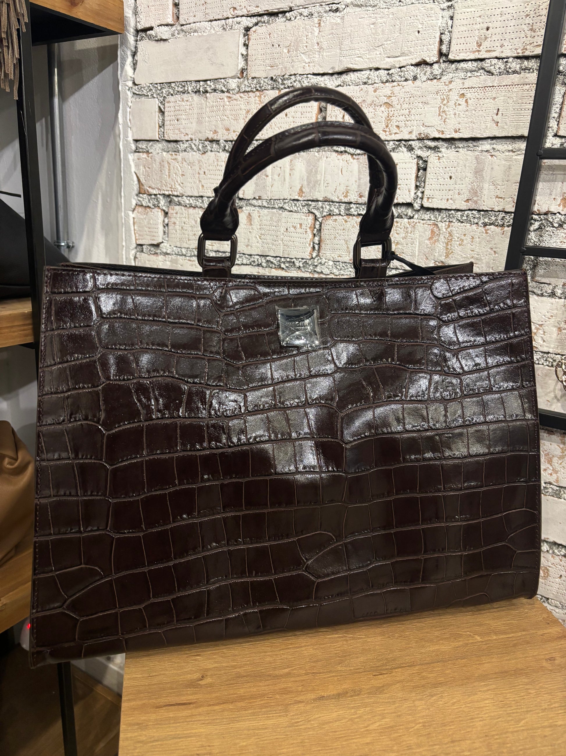 Borsa a mano in pelle con effetto pitonato, tracolla rimovibile, chiusura a clip magnetica