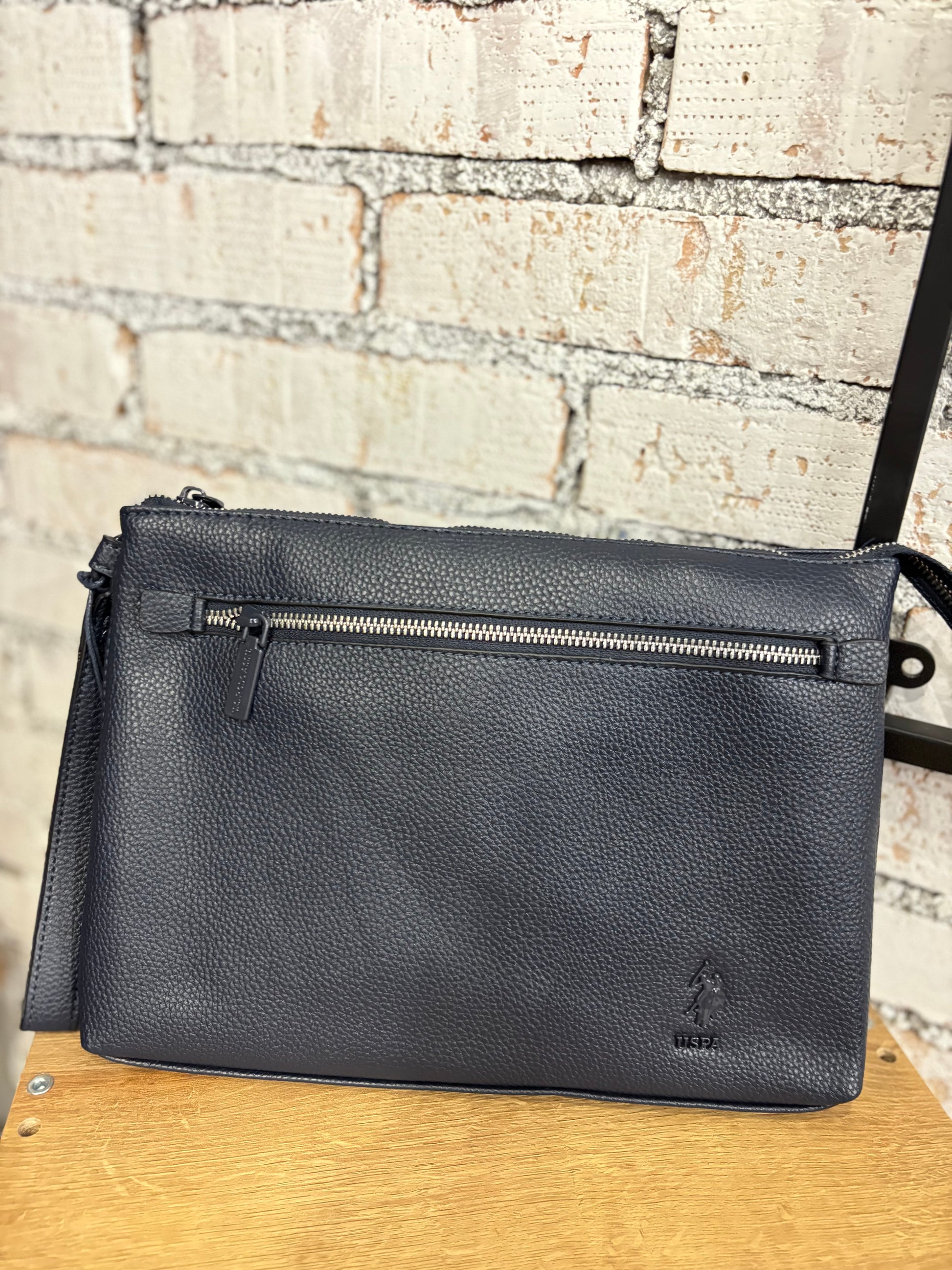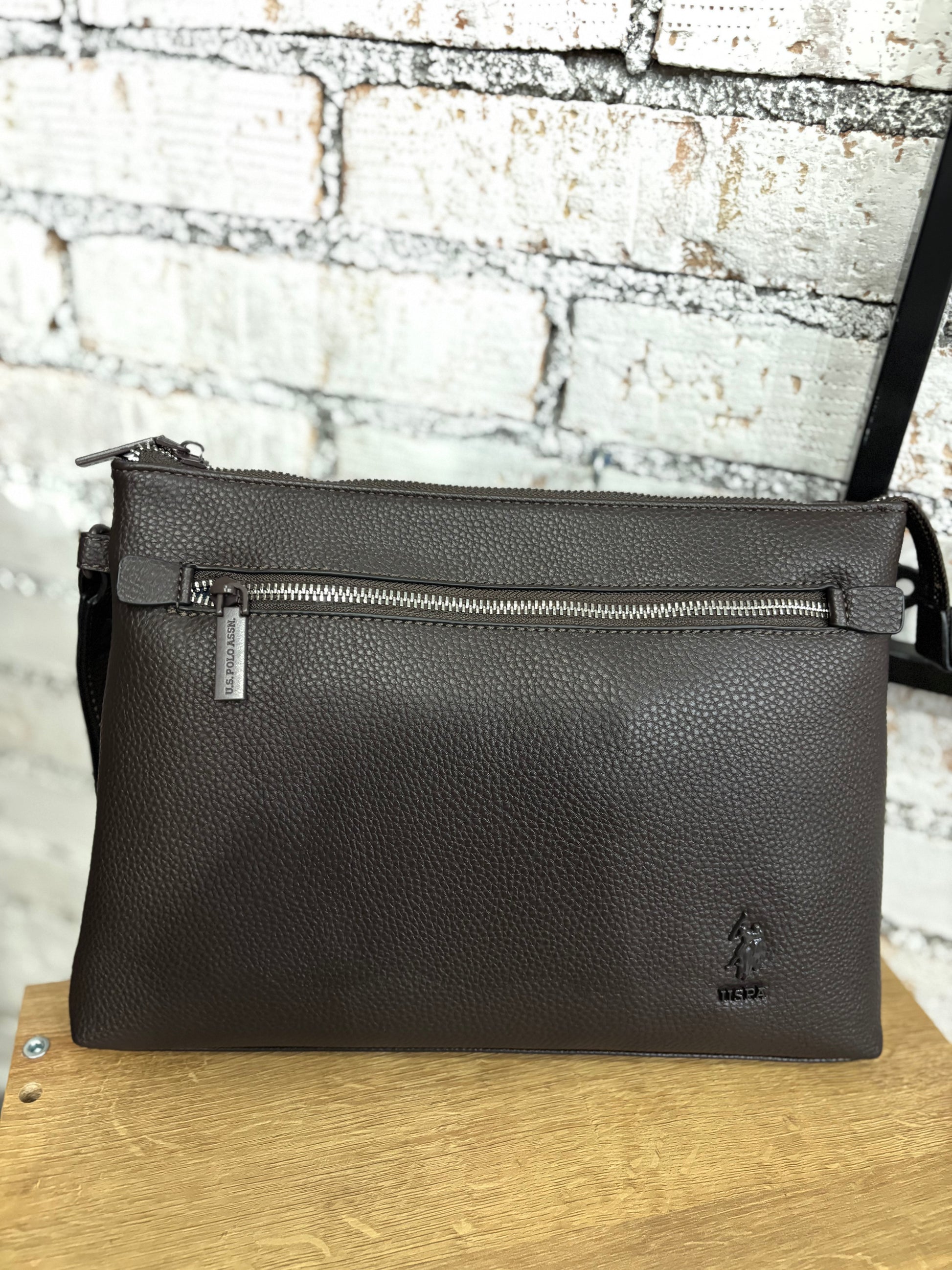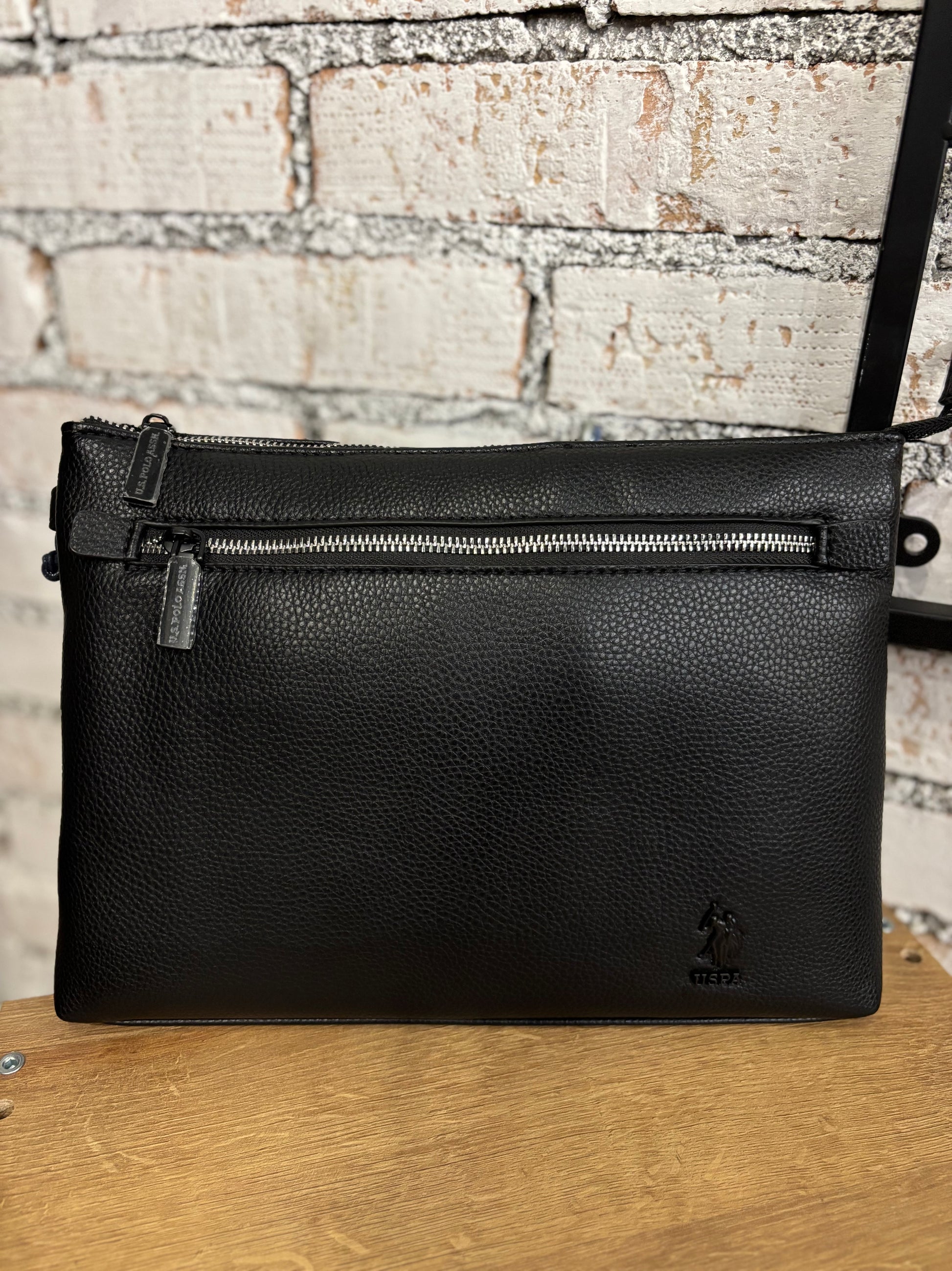 Pochette per uomo in poliuretanica, due tasche con chiusura a zip, manico in poliuretanica